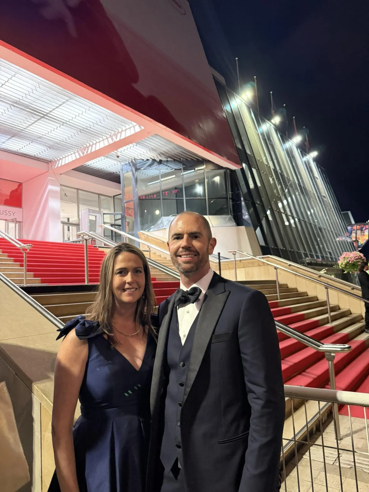 Michael and Lesley E. with the Cannes Film Festival statue. Ready to get the adventure started!