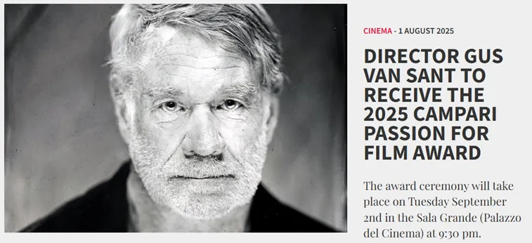 In addition, the Venice Film Festival will honor Gus Van Sant with the 2025 Campari Passion for Film Award, which recognizes filmmakers whose passion drives bold, creative storytelling. As described on the VIFF website, this award is “not simply a lifetime achievement, but a tribute to the will to stand out and leave an indelible mark on the art of cinematic storytelling.” Congratulations to Gus on this well deserved recognition!